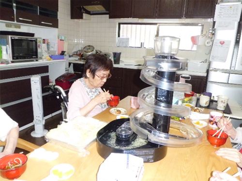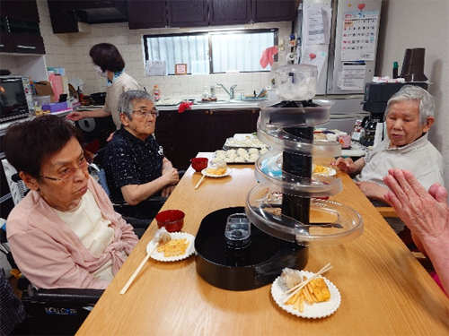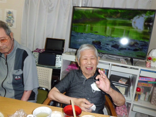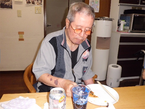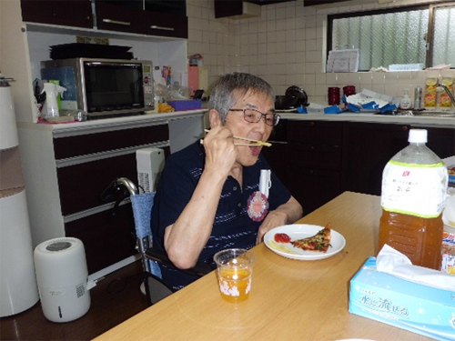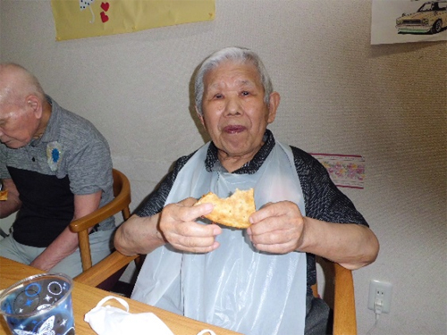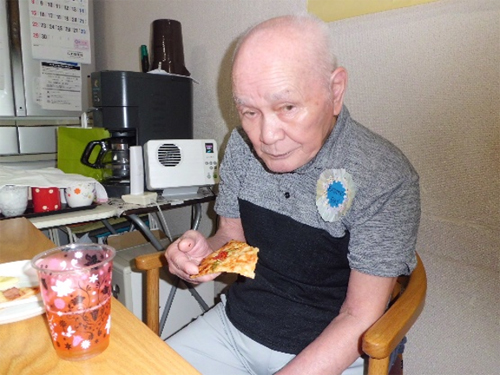 明日は父の日です。一足早くデイでは昼食をピザでお祝いしました。