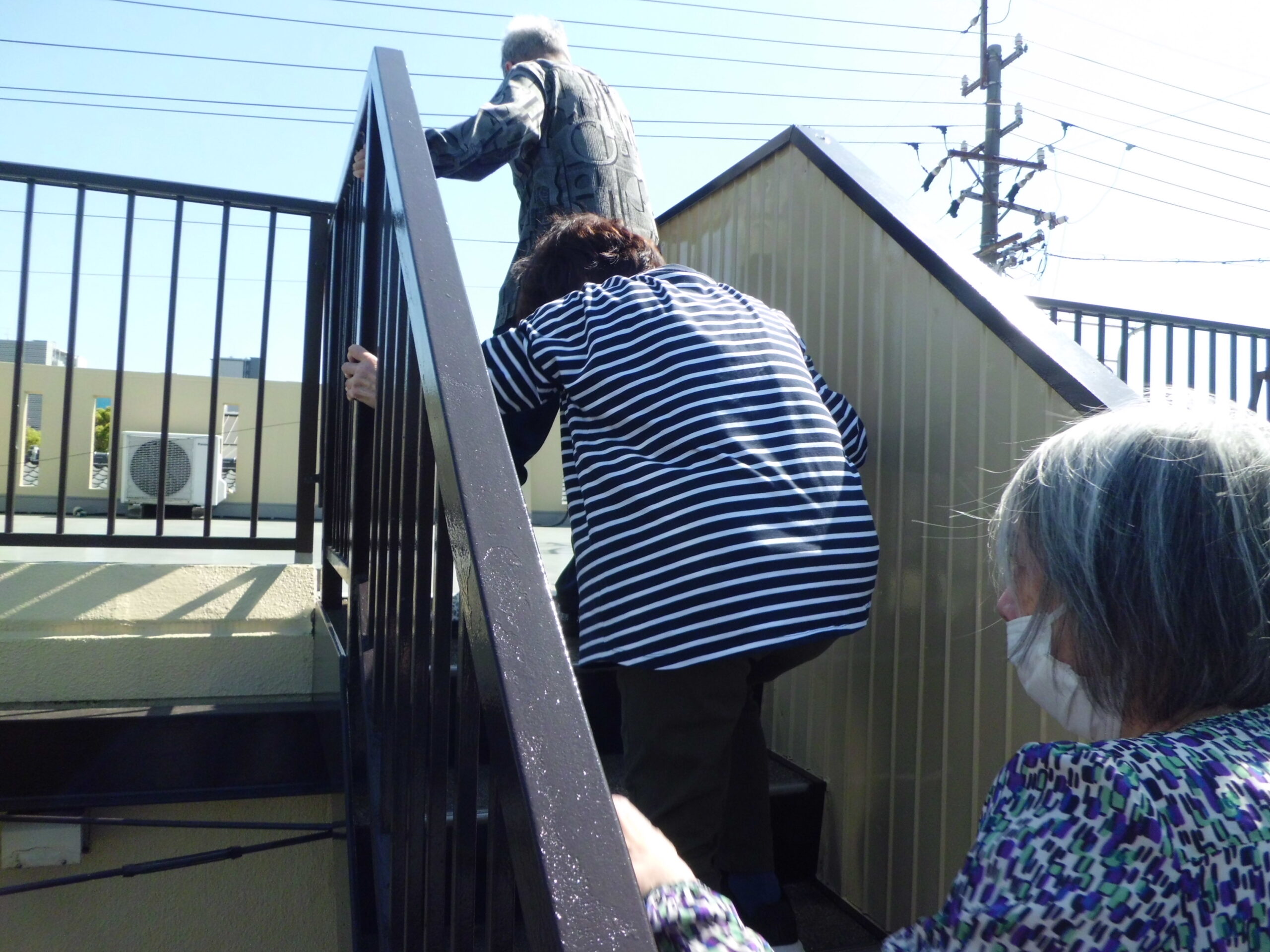 今回初めて2名の利用者様に屋上まで上がっていただきました。