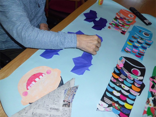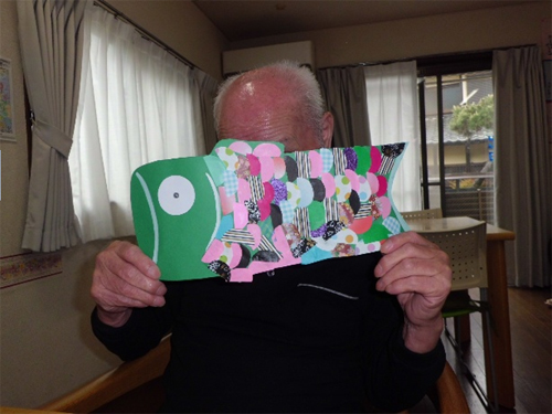 一人ずつ好きな色の鯉を選んでもらい目や鱗を付けてもらいました。