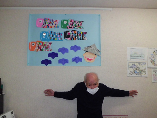 2025.04.175月5日のこどもの日に向けて、こいのぼりの壁画を作ってみました。