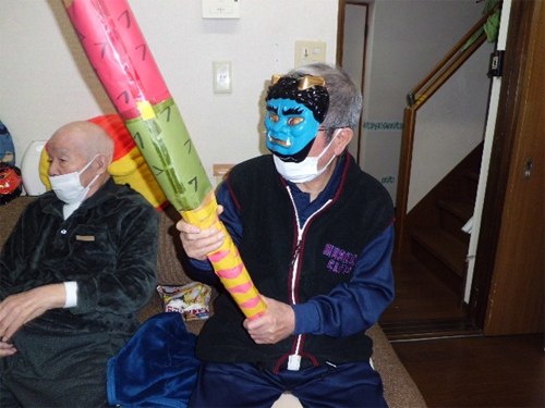 気分はもう春ですね。今日は恒例の豆まきをしました。